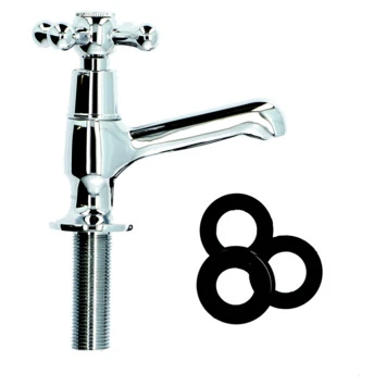 Deze Handson Fonteinkraan Louise met Draaiknop Chroom is onderdeel van de Handson Louise kranenserie. Kenmerkend voor de Louise-serie zijn de klassieke bedieningsknoppen. Je kunt in deze serie kiezen tussen tweeknops mengkranen of thermostatische kranen. Dankzij de keramische schijven in de kraan is het makkelijk om de kraan goed dicht te draaien. De kraan is voorzien van een chroom afwerking. Dankzij de fabrieksgarantie van 5 jaar ben je verzekerd van een goede aankoop.