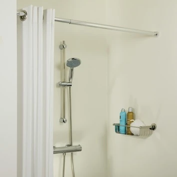 Sealskin Douchegordijnstang Seallux Verstelbaar Chroom 80-130 cm is een praktische douchegordijnstang van het merk Sealskin. Het is een telestang met een doorsnede van 28 mm. Uitgevoerd in chroom draagt dit product bij aan de moderne uitstraling van je badkamer. De afmeting van 80-130 cm maakt je douchestang ideaal voor het ophangen van je douchegordijn in een nis tussen 2 muren van de badkamer. Dit product is makkelijk te monteren.