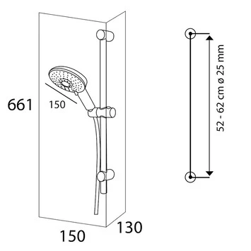 De Tiger Doucheset Splash Termini met Glijstang 6 Douchestanden is uitgevoerd in chroom, en bestaat uit een handdouche met een diameter van 15 cm, voorzien van 6 standen en een antikalk functie, een douchestang en een doucheslang van 1,5 meter. Deze doucheset past op de plek van je oude doucheset, indien ruimte tussen de twee steunen van de oude doucheset 52 cm tot 62 cm bedraagt. Dit product is onderdeel van het Tiger Splash assortiment, dat bestaat uit handdouches, doucheset, doucheslangen en toebehoren.